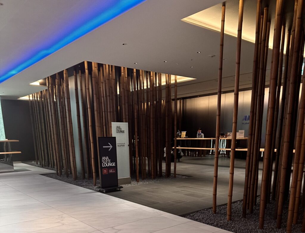 ANAスイートラウンジ(羽田・国際線第2ターミナル)は、出国審査を抜けてすぐのエリアにあります。 搭乗ゲートに向かう途中、ANAラウンジと並んで設置されていて、案内表示もあるので迷わずたどり着けました。