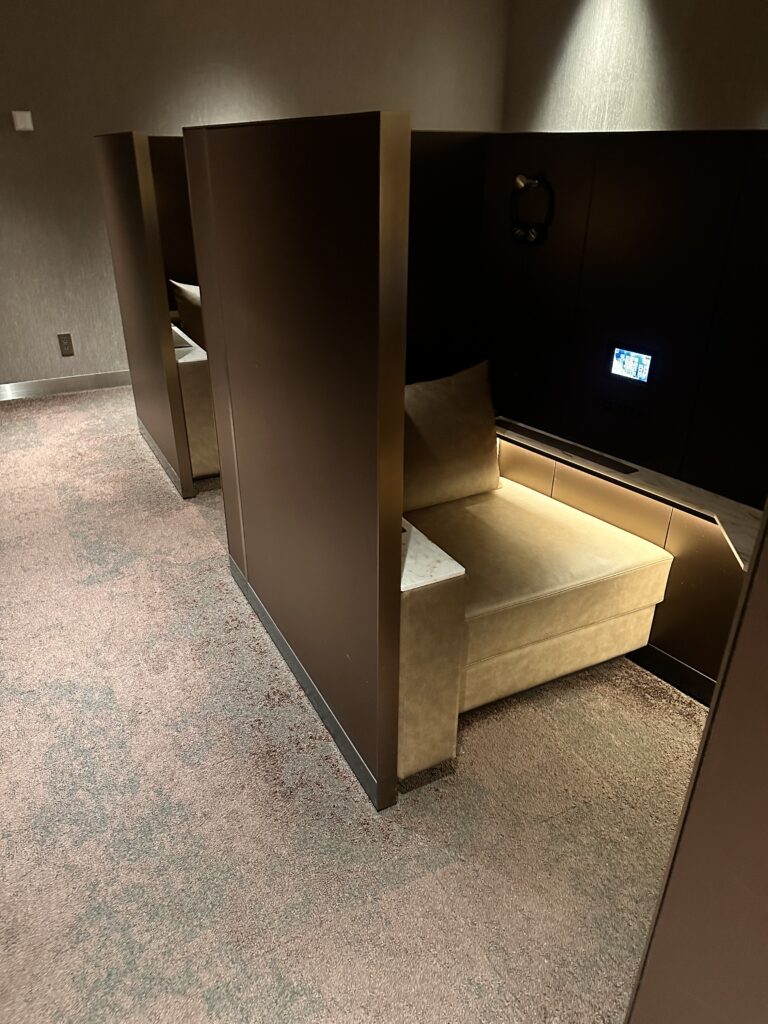 混雑していても座れないことはなく、静かに過ごしたい人も、食事やお酒を楽しみたい人も、それぞれのスタイルで快適に過ごせるのが魅力。 特に、バーカウンターやシャワールームの存在は、他のラウンジにはない特別感を感じさせてくれました。