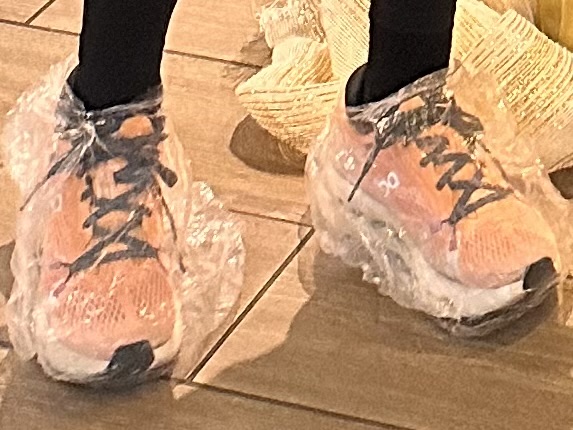 - シャワーキャップをシューズ全体に被せる